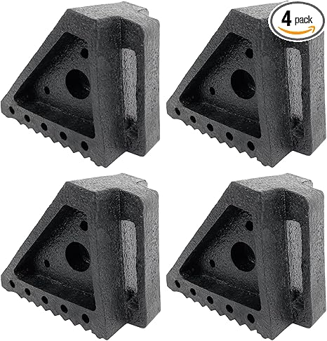 SPECIAL DESIGN: Tire chocks the overall use of a triangular design with ribbed and textured at the bottom. Make the product grip and friction stronger. It can be in place with just one quick step, no need for hammering, heavy blows, and other tired actions. People say that this special design does not have to worry about being squashed even on a wheel ramp or a smooth garage floor